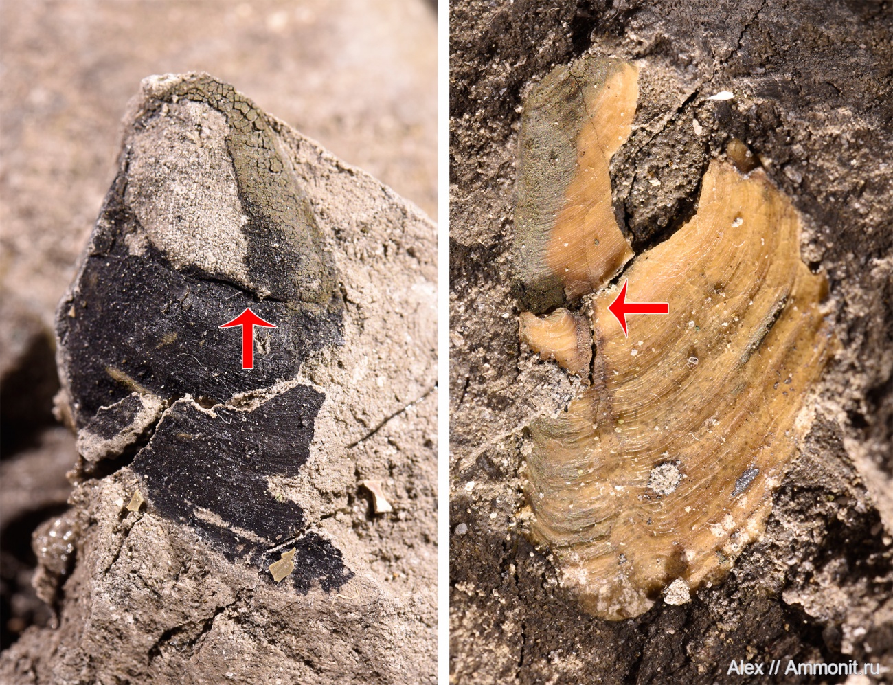 P.S. Часто спрашивают, как не спутать аптих с двустворкой - так вот в этих слоях перепутать их совершенно невозможно, потому что чёрная органическая часть аптиха в момент находки блестит как антрацит, у двустворок ничего подобного нет.