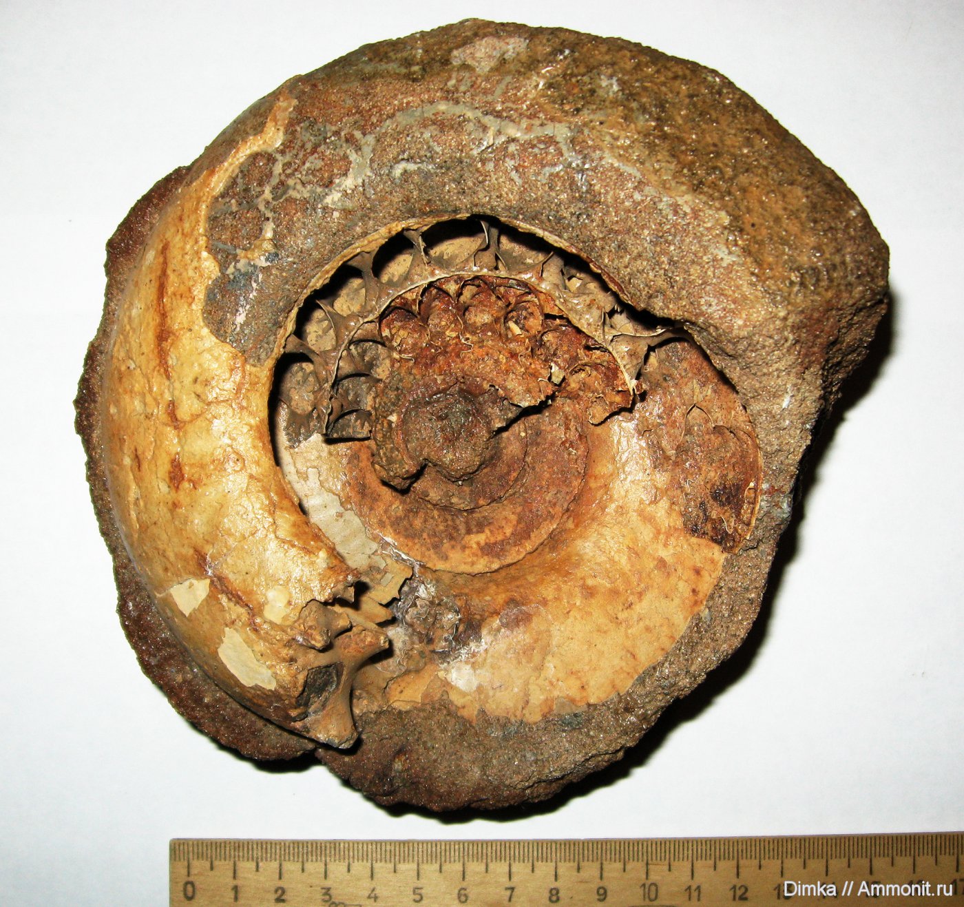 На фото одна из наиболее типичных форм сохранности раковин аммонитов, особенно laugeites, встречающихся в слоях зоны Epivirgatites nikitini на берегу р. Волги в р-не с. Глебово и Мостово-Василево.