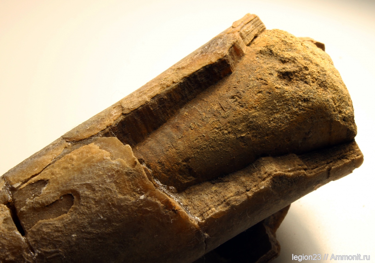 Найден крупный белемнит(Фото с размером). От таких крупных мне фрагмаконы никогда не попадались, но предполагаю, что у этого образца имеются следы, которые остались на внутренней стенке.
