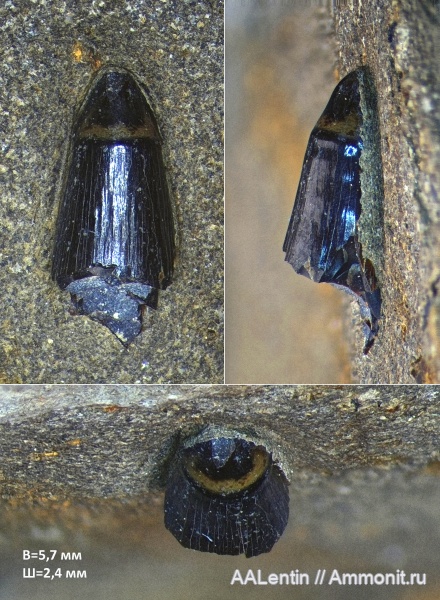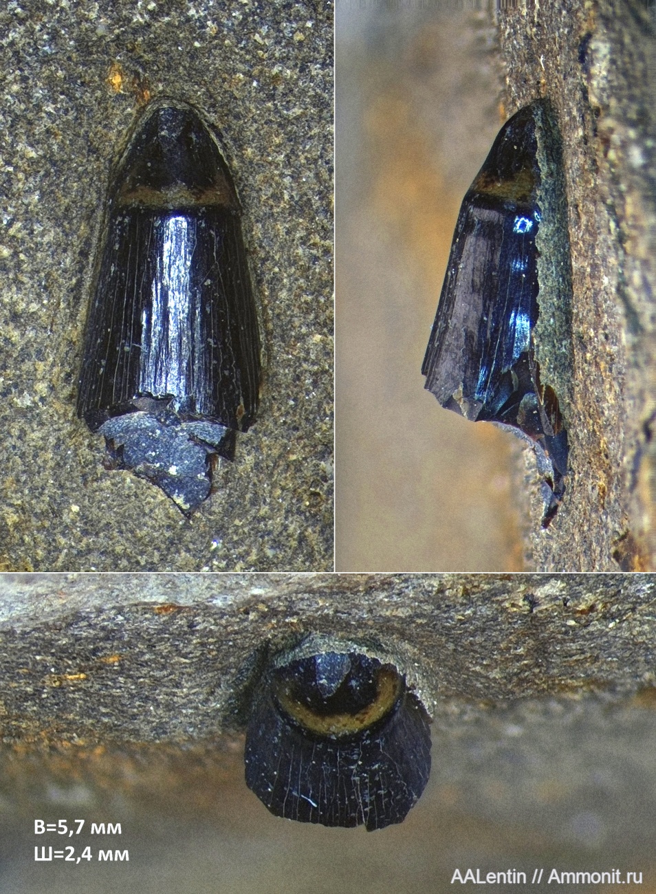 При расслаивании горючих сланцев из зоны Dorsoplanites panderi, на месте их извлечения, удачно открылся фрагмент коронки зуба.
