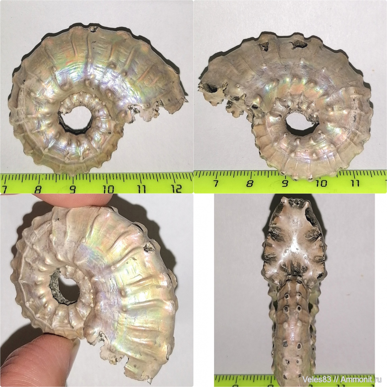 Аммонит сфотографирован в полностью сухом виде(после суток в сушилке).Первый раз встречаю такой яркий перламутр у сухого аммонита.