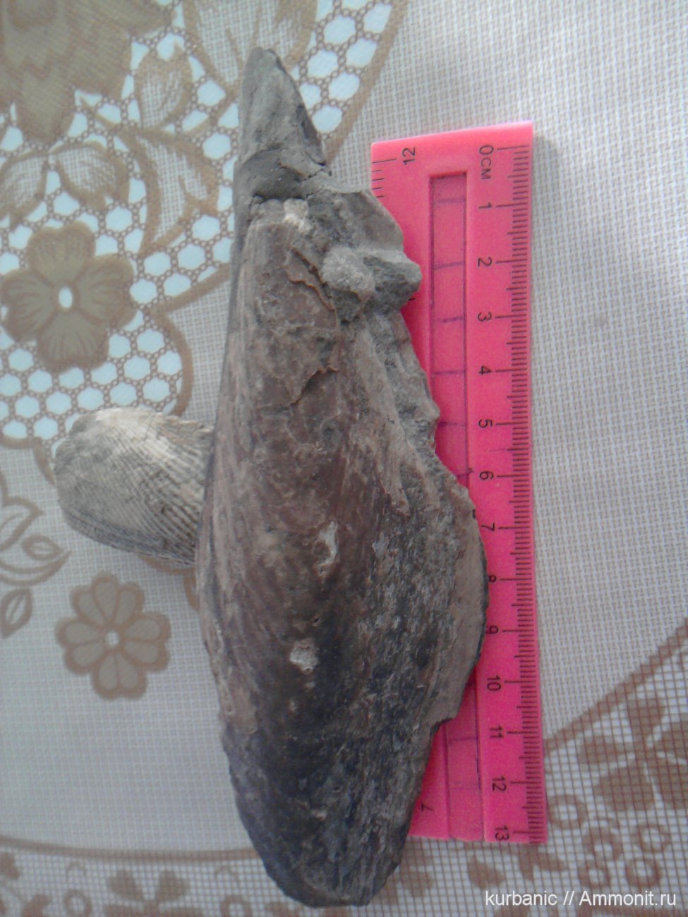 такие двустворки находятся в валунах средний размер 50-60 см в длину а эта особь маленькая но зато вытащил целым из валуна