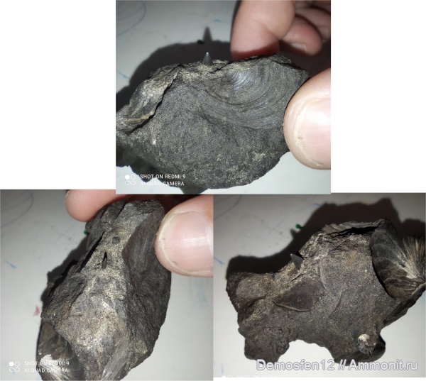 Нашёл в окаменелости из нижних мнёвниках. По виду похоже на зуб. Теперь вот думаю попытаться аккуратно вытащить или оставить как есть.