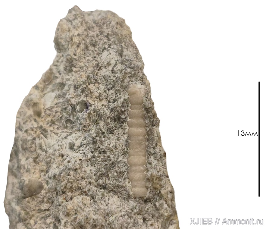 Фрагмент стебля морской лилии из бейрихового известняка.