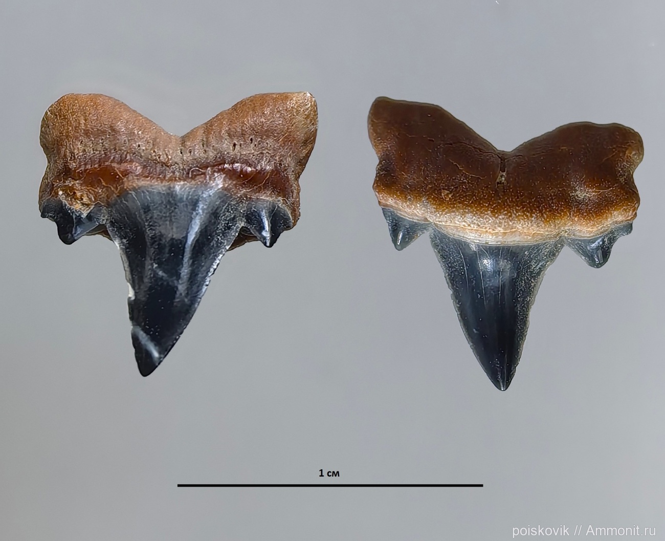 Зуб акулы (в 2-х проекциях) из отвалов карьера у с.Пролом.