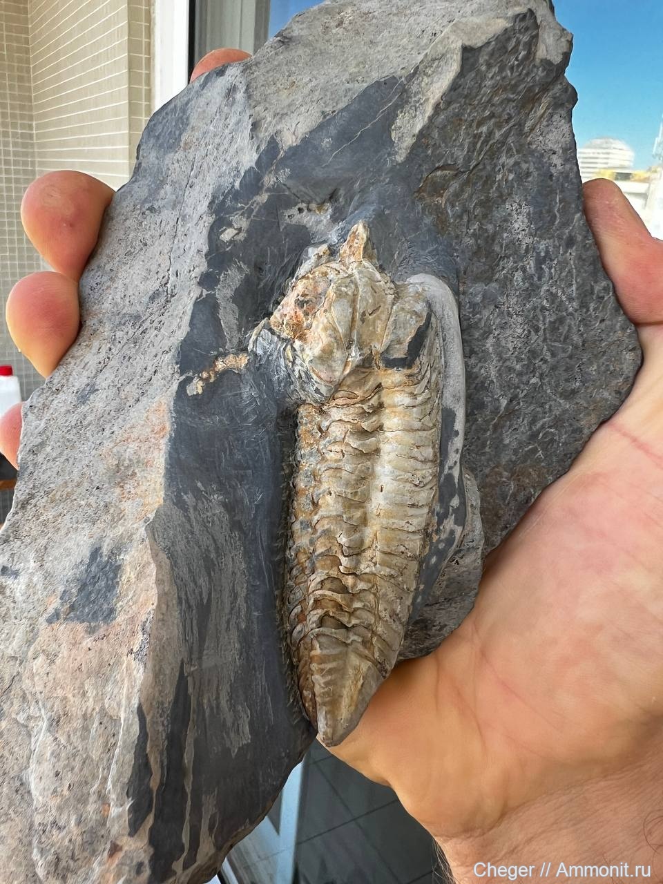 Тоже, скорее всего, это Salterocoryphe salteri salteri (Rouault), а вот на месте головного щита лежит пигидий другого калименидного трилобита - Colpocoryphe
