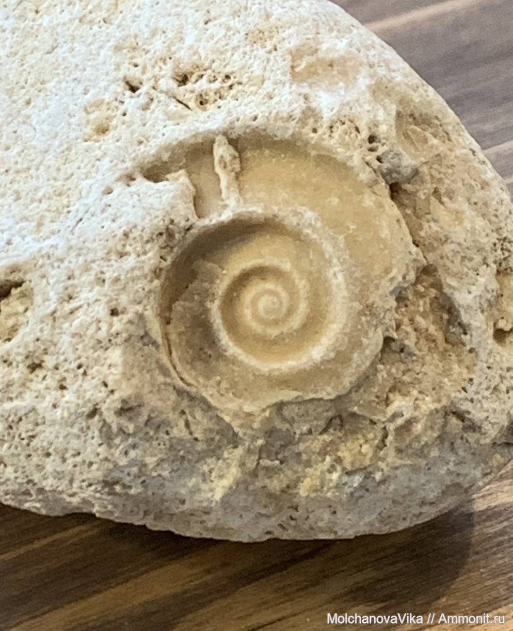 Внутренняя поверхность раковины гастроподы (попросту говоря, морской улитки) рода Euomphalus. Кликнув по родовому названию, вы можете увидеть аналогичные находки. Для Подольска характерен карбон, особенно московский ярус среднего карбона. | ||||||