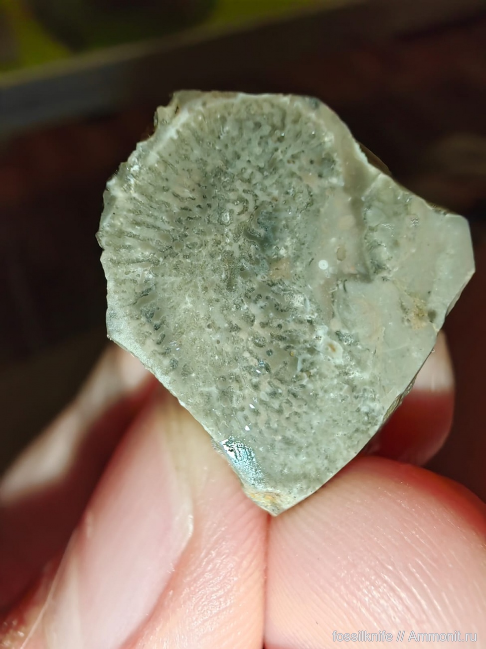 Судя по всему мшанка Trepostomida, из слоев пермских известняков с ручья Балка Никитино. Надеюсь, образец после пришлифовки ценность не потерял.