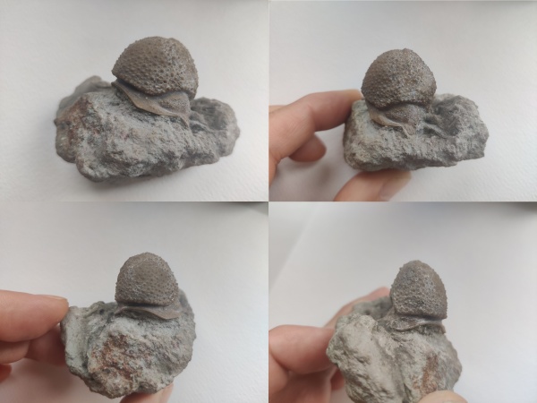 Ваш образец, как мне кажется, ценный и научный. Обычно от этого вида находят только пупырчатый верх "блямбы", а у вас сохранилась почти вся глабель с краями. Я таких еще не видел. | ||||||