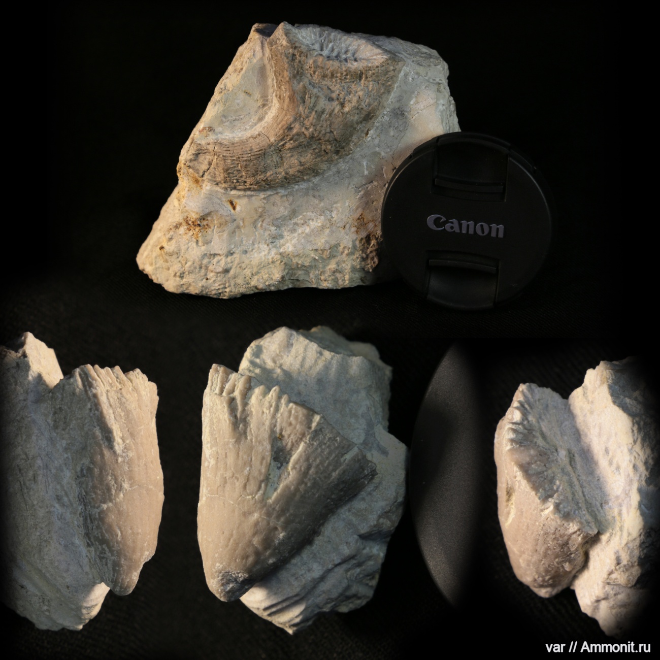 Нижний образец представлен в трех ракурсах. Из результатов беглого анализа источников и Интернет-ресурсов по поводу палеозойских кораллов окрестностей Самары у меня сложилось впечатление, что для Сокского карьера наиболее характерны два рода ругоз – это Bothrophyllum и Gshelia. Однако этот образец, как мне кажется, совсем на них не похож. Буду признателен за его определение.