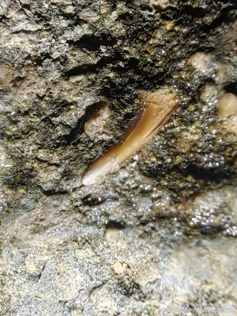 Фото только такое вышло сделать, к сожалению. Второй зуб был по форме как трезубчик, возможно это был зуб акулы, но этот это точно не акула | ||||||