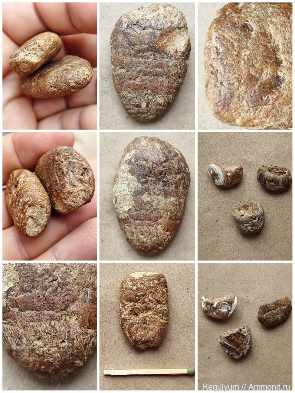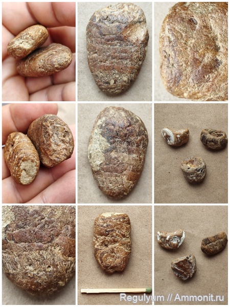 Давленные (сплющенные) копролиты акул. У акулы кишечник в виде спирали, поэтому копролиты спиралевидные. При желании можно расколоть и изучить содержимое при помощи лупы или микроскопа, т.к. могут попадаться остатки трапезы акул (кости рыб и прочее). | ||||||