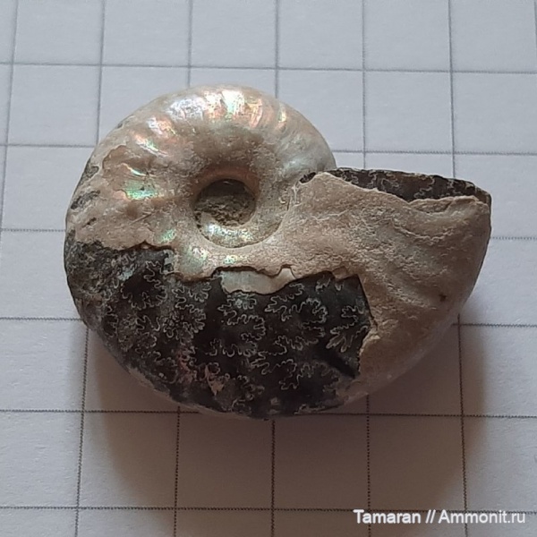 Прогуливаясь по набережной, забрел в местный магазинчик с минералами. Среди прочего там нашлись и маленькие мадагаскарские аммониты с перламутром. Ребристый морфотип Cleoniceras'а?