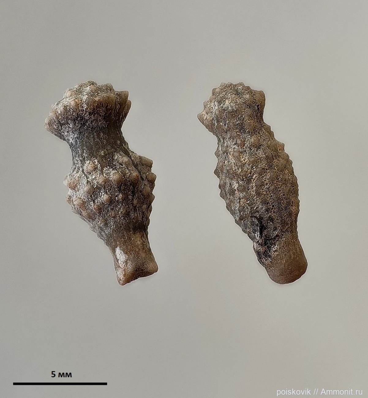 Иглы морских ежей (длина 11 и 12 мм) из берриасских отложений в окрестностях с.Родное.