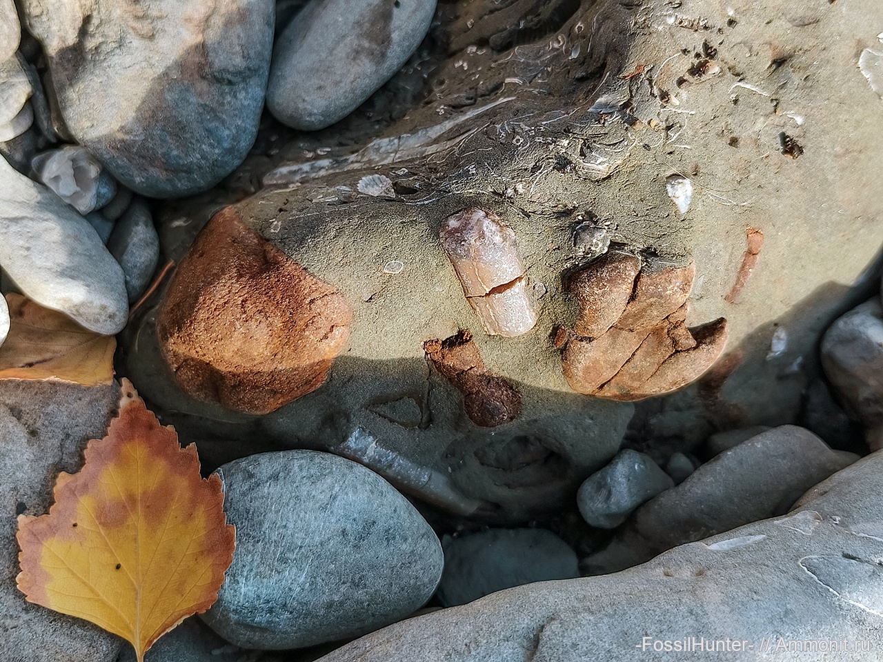 Пост осеннего настроения. Небольшой блок с костями найден в 1,5 метрах от большого скелета, который публиковал ранее. Кости другой особи, по форме определил как мелкие переднетуловищные позвонки и фрагменты ребер. К сожалению это единственное фото данного блока, был слишком увлечен съемкой, отрисовкой схемы большого скелета.