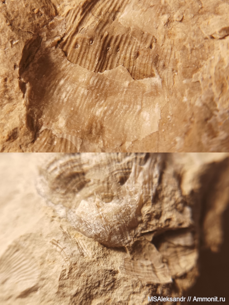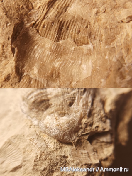 Обратил внимание на интересный узор на раковине брахиоподы в месте, где находились иголки.