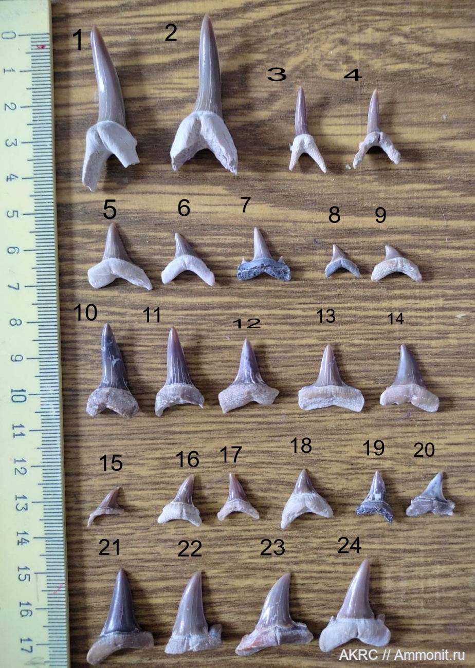 Собраны у глиняного берегового склона такыра. Вымыты из него талыми водами и весенними осадками. Я слабо разбираюсь в систематической принадлежности древних акул и не обладаю навыками их определения. Поэтому, не сомневаюсь, в моем списке имеются ошибки. Буду признателен, если укажете на них.