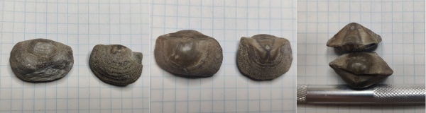 Извините за качество фото, пока не очень умею фотографировать окаменелости. Не знал как их поставить на ребро, пришлось подложить скальпель.