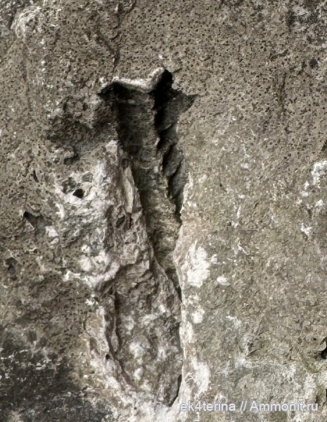 Сифон головоногого моллюска с наполовину разрушенными камерами, выветриванием. | ||||||