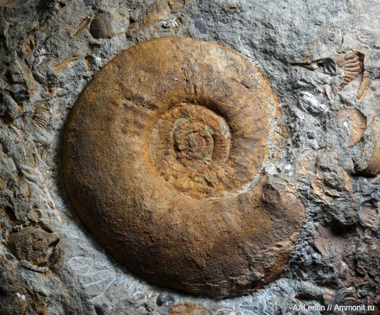 Аммонит удачно открылся на крупной конкреции.