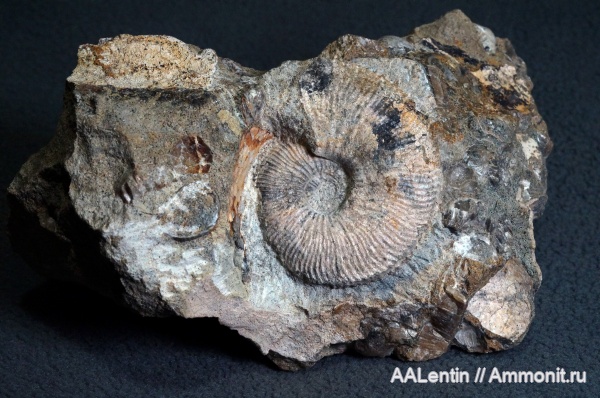 Аммонит удачно открылся при раскалывании конкреции, лишь слегка отпрепарирован.