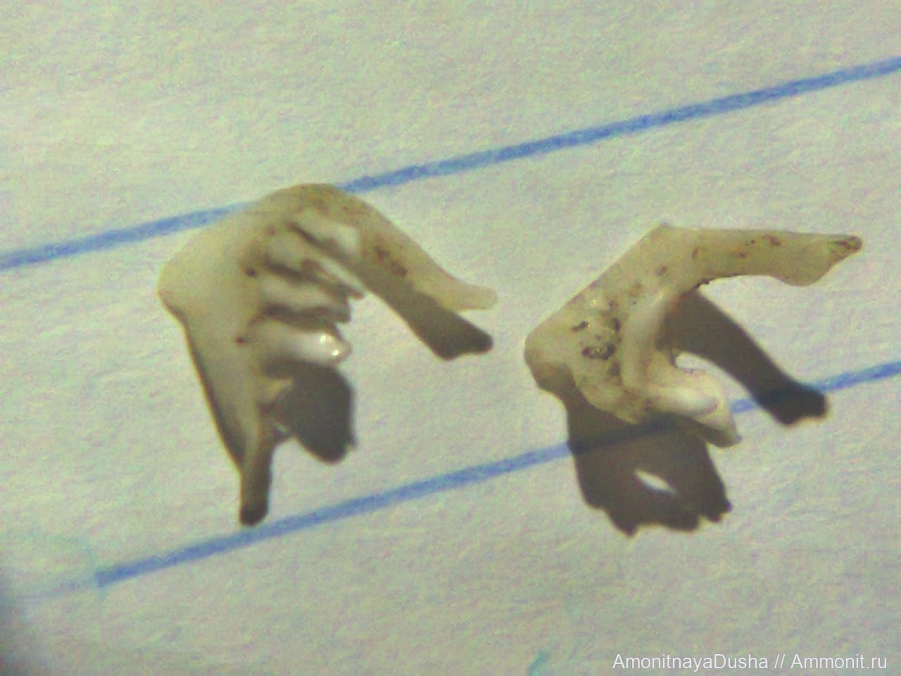 Трижды нашла в карьере,в разных местах,3 почти одинаковых зубика или челюсти,но не знаю чьи.