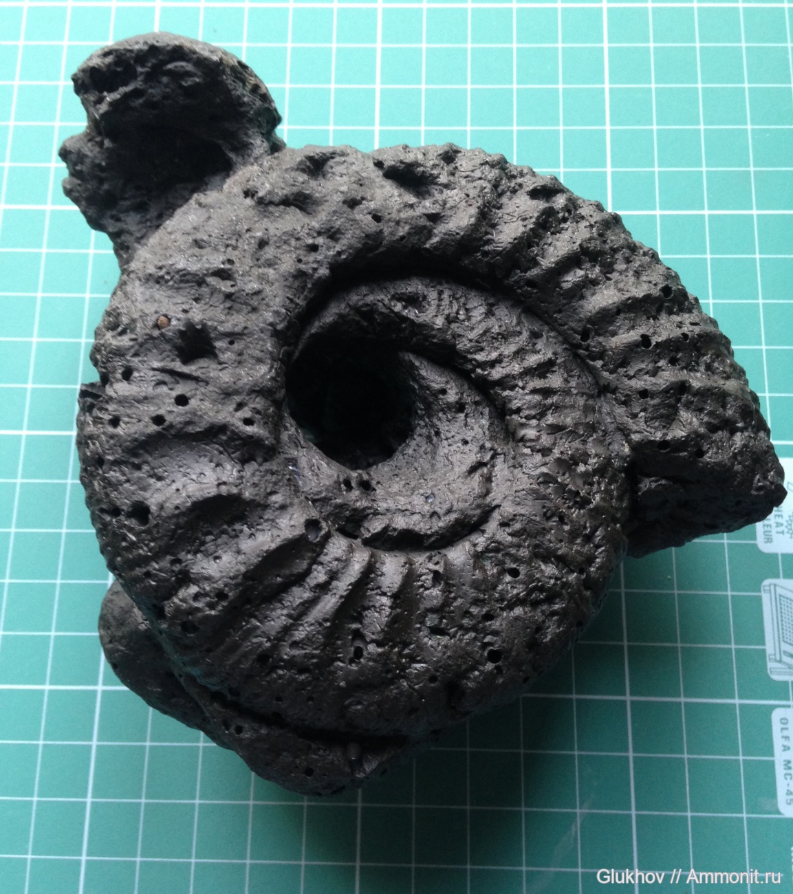 Я предполагаю, что это отпечаток аммонита, заполненный окаменевшим осадком. Насколько мне известно, фоссилии такого типа называют внешними ядрами. Поправьте меня, пожалуйста, если я ошибаюсь. Как правильно назвать такую окаменелость? | ||||||