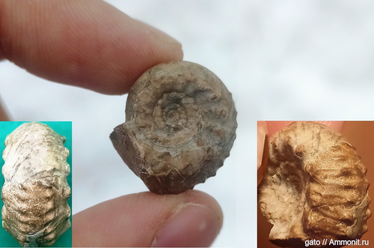 Спасибо! Не такой уж ювенильный - 2,3 см. Т.е. такая скульптура сохраняется и дальше, если только не заменяется макроконховыми оборотами. Похож и на Kosmoceras и на некоторые меловые виды. Не уверен даже, что это кимеридж, сохран почти такой, но есть отличия | ||||||