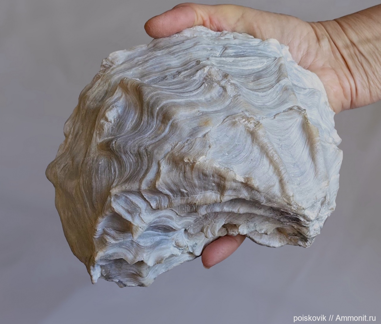 Раковина двустворчатого моллюска (размеры: 16см Х 13см Х 9см) из палеогеновых отложений в окрестностях с.Скалистое. Дополнительные ракурсы: вид сбоку - Фото и внутренняя поверхность - Фото.