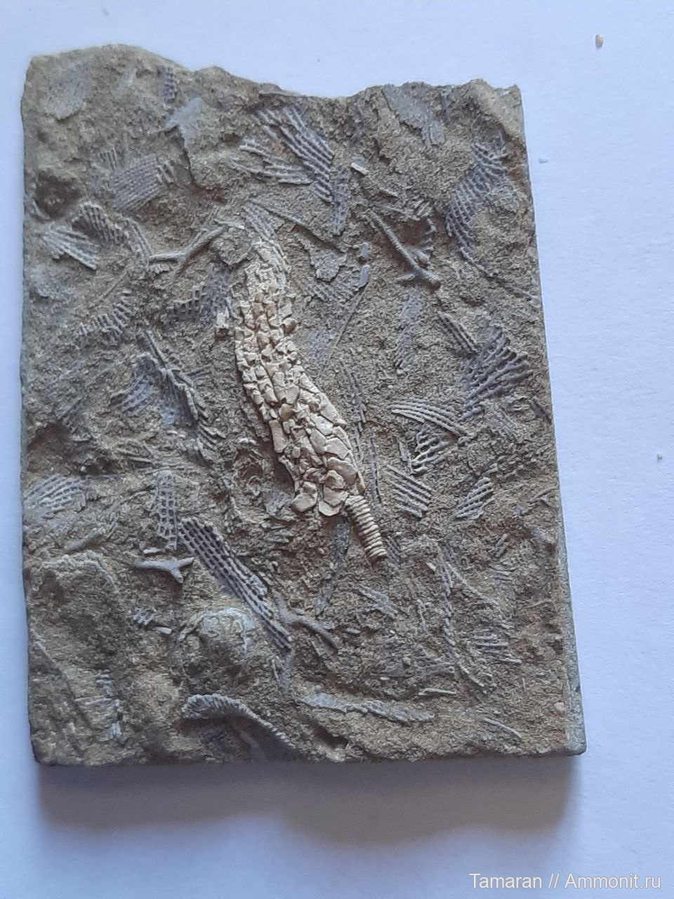 Недавно приобретённая морская лилия рода Aphelecrinus Kirk, 1944. Bangor limestonе, Алабама, честерский ярус, ок. 345 млн лет. Размеры пластинки - 6х4,5х5,1х4,3 см.