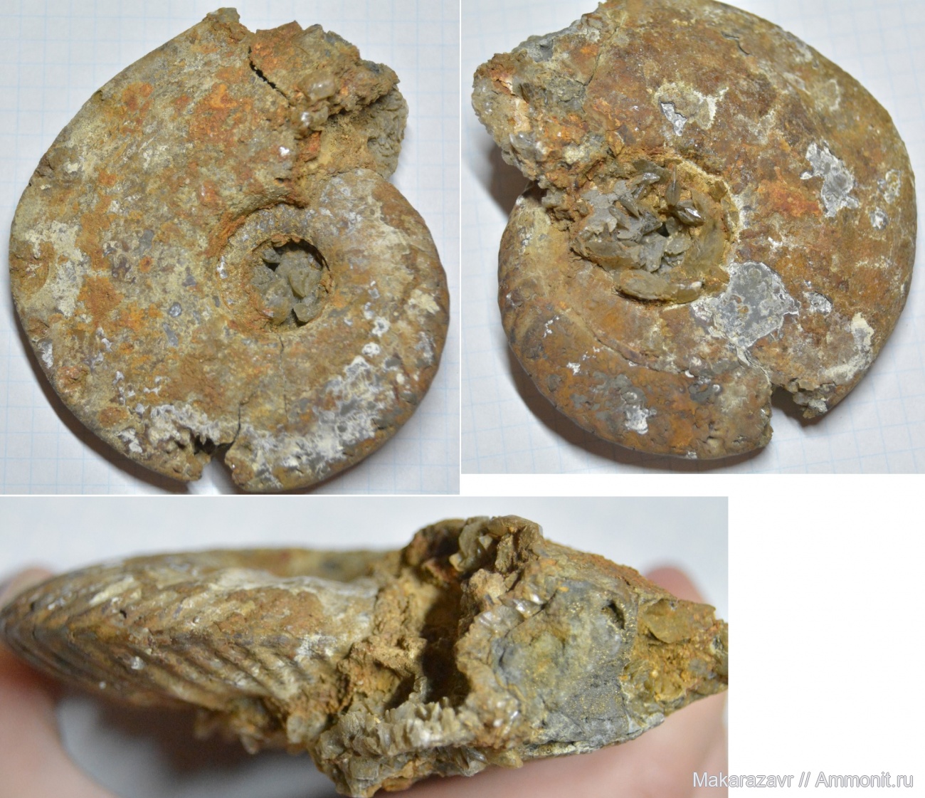Крупный Quenstedtoceras, серединку спирали заняли кристаллы гипса.