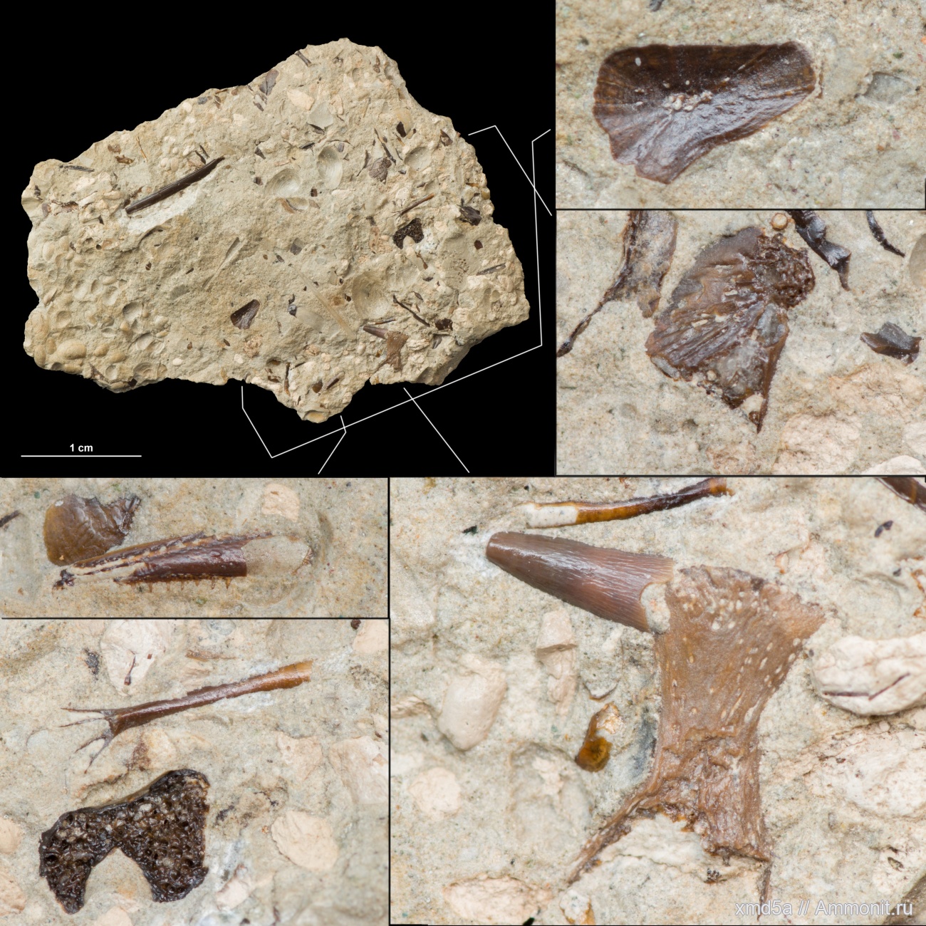 Интересно было бы узнать какие именно запчасти тут представлены (насчёт челюсти понятно). Подозреваю что косточка и зуб на фото внизу справа не рыбьи.