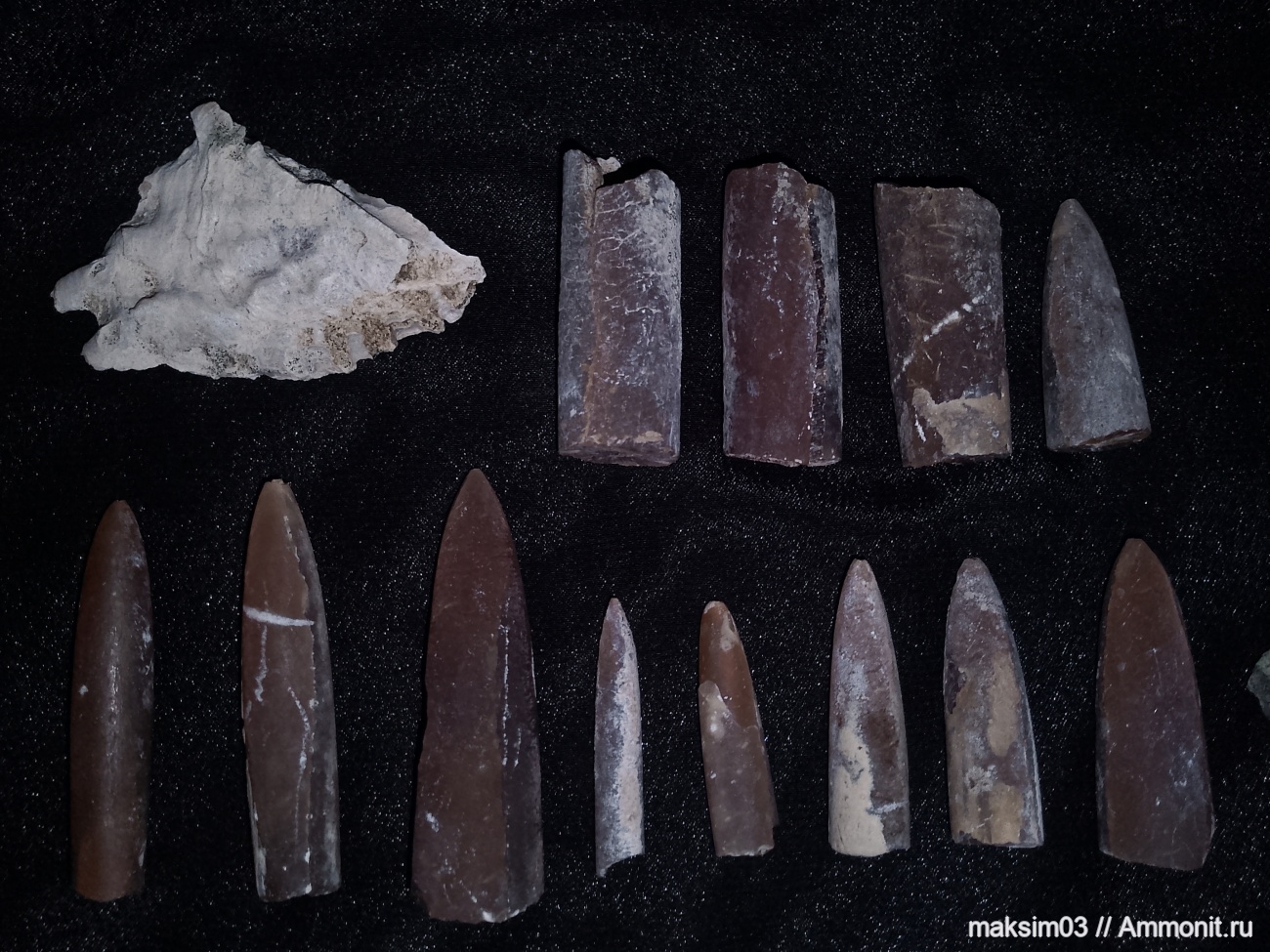ростры белемнитов как целые, так и не целые, как маленькие так и больше