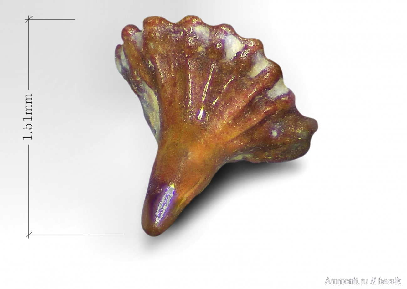 Да, я помню этот образец - сильно он меня удивил. Теперь так скажу: это МОЖЕТ быть сложной чешуёй хрящевой рыбы. Но допускаю что это не чешуя. Больше того - может быть это и не рыба. | ||||||