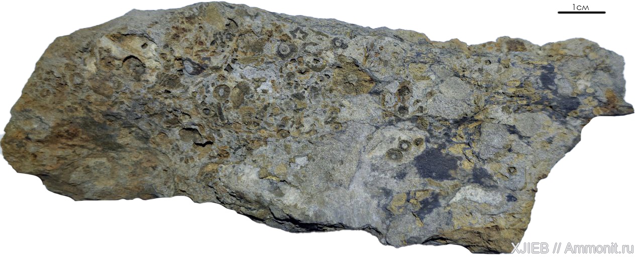 Отпечатки члеников криноидей в выветрелом алевролите.