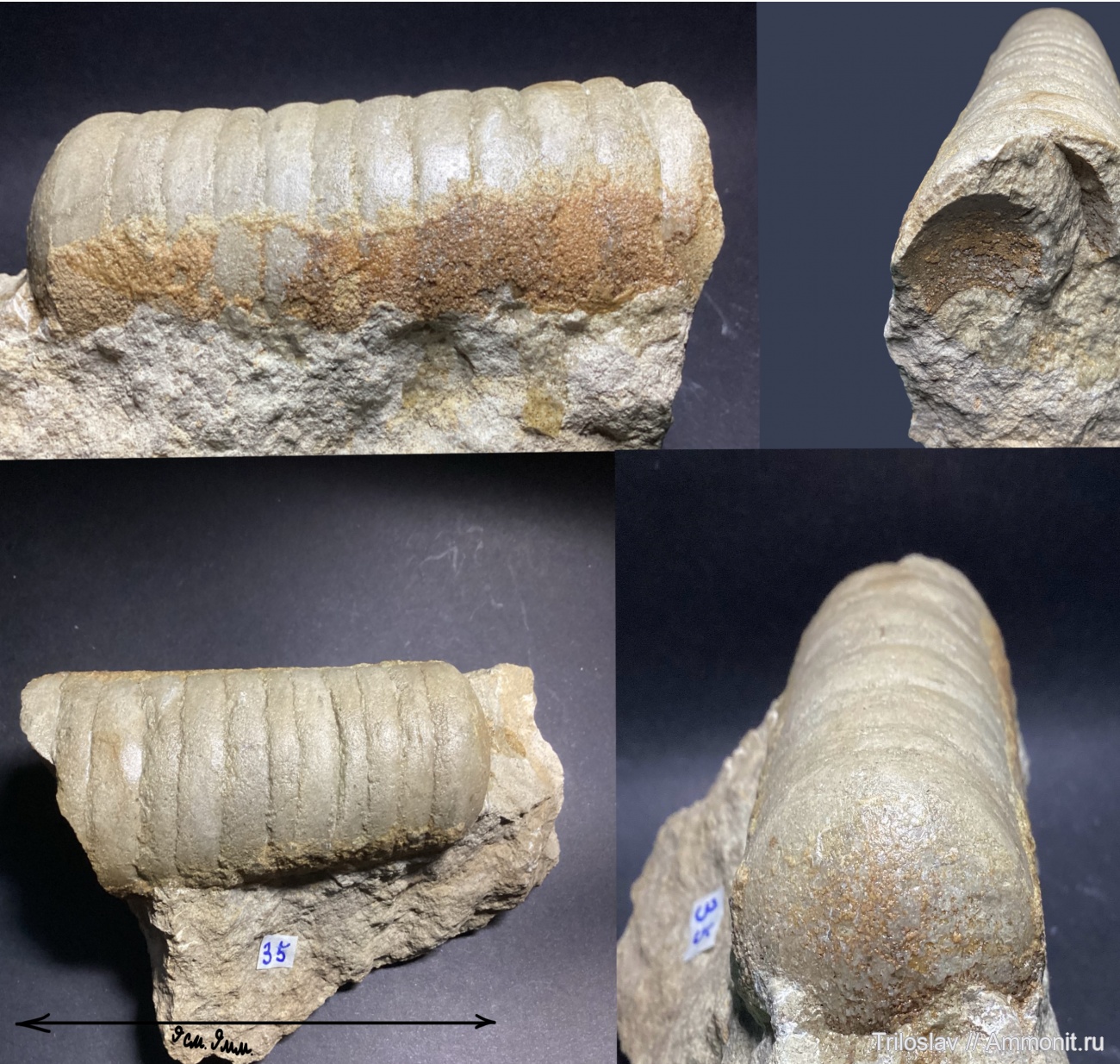 У Ортоцерид сифон расположен в центре раковины, а у этого экземпляра он в боковой части раковины (смотреть правое верхнее фото) . | ||||||
