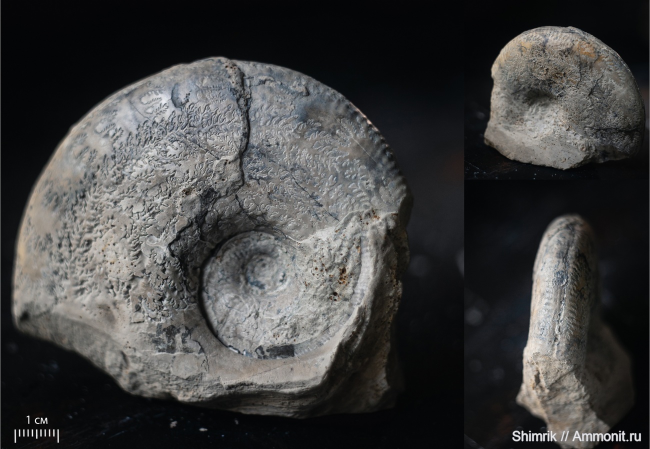 Без полной взрослой жилой камеры до вида определить их не просто. Но подрод, несомненно, Kosmoceras (Lobokosmokeras). можно написать "K.(L.) ex gr. kuklikum (Buckman)". | ||||||