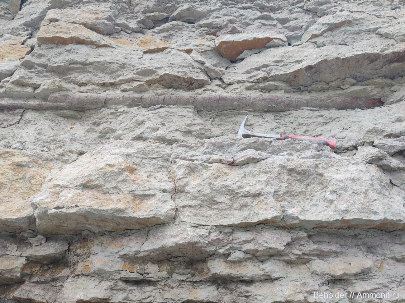 Увы. Их в принципе не извлечь не разбив на куски. Да ещё он на высоте более двух метров от уступа. Чтобы положить туда молоток я встал на цыпочки. | ||||||