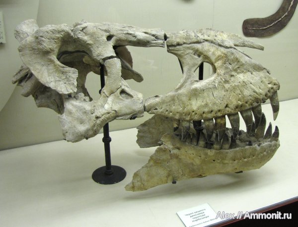 Еще один настоящий (хотя и не полный) череп Tarbosaurus bataar в витрине ПИНа.