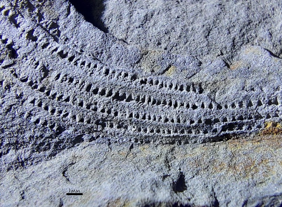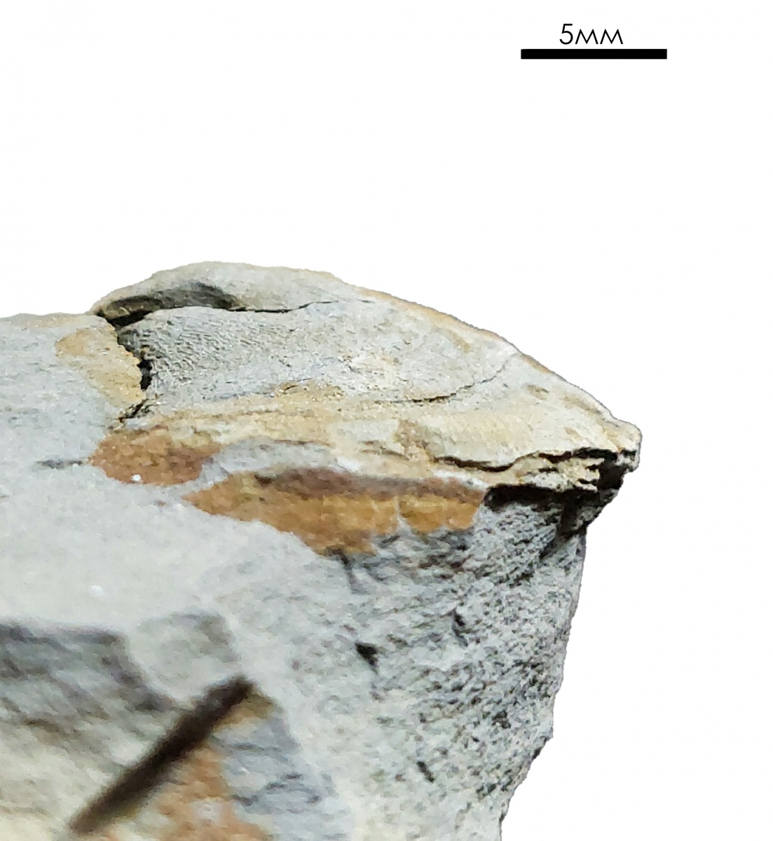 Ядро брюшной створки брахиоподы Torynifer microspinosus Ben. в глинистом сланце.