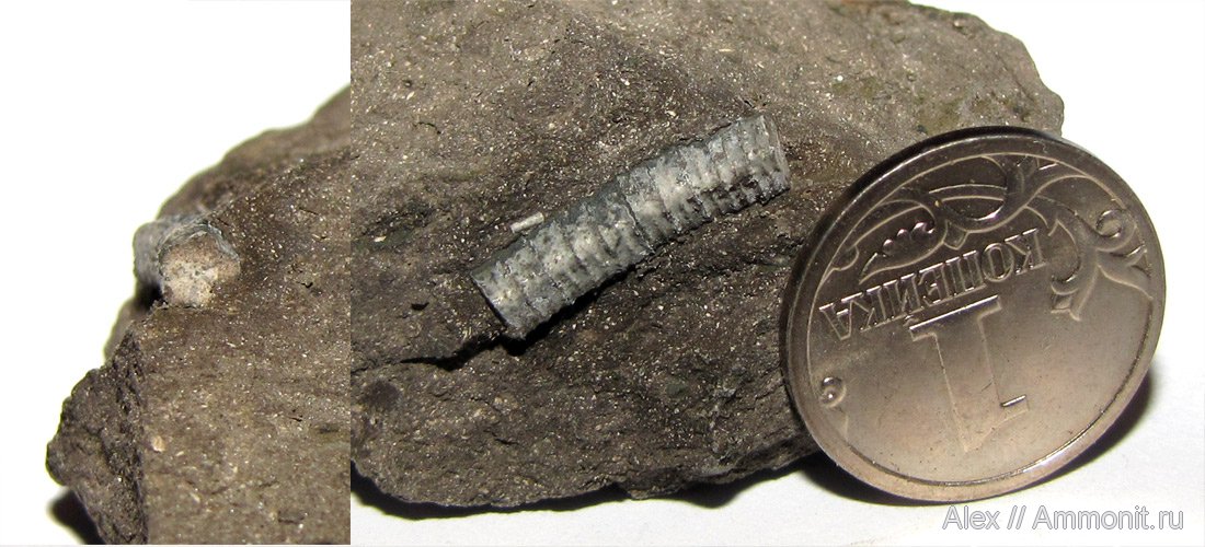 Маленький стебель морской лилии Pentacrinus sp. из оксфордских глин Цемгиганта.