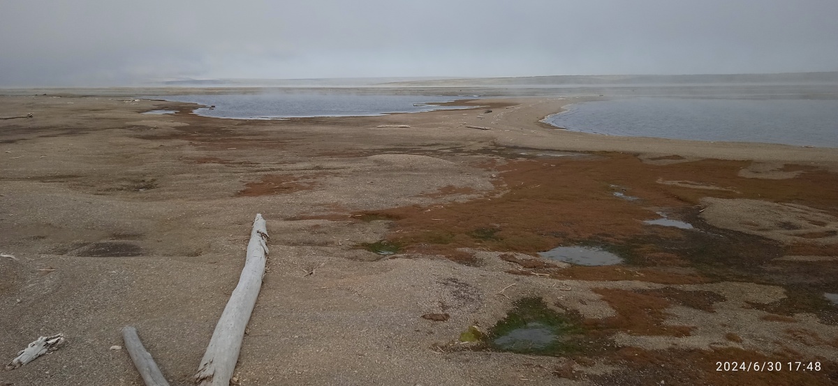 Северо-западная часть о. Котельный Фото. Самый крупный из островов архипелага Новосибирские острова. Полярный день наступает 25 апреля, заканчивается 18 августа, продолжительность 114 дней, полярная ночь с 3 ноября по 9 февраля, продолжительность 160 дней. Число дней с отрицательными температурами 286, с положительными 79. Необитаем, место находок находится за 75 параллелью. Залететь можно только с военными, вылететь тоже Фото. От Тикси до Котельного, до того места, где я работал 530 км через море Лаптевых на северо-восток. Или 2,5 часа полета на вертолете. Передвигаться по острову относительно безопасно только, когда на море лед, потом на остров приходят белые медведи Фото, Фото, Фото Медведь белый . Впрочем, они там есть всегда, и зимой тоже. Но считается, что основное паломничество их приходит во время таяния. В июле и начале августа лед приносило вновь Фото. Обычная температура летом +3-+5, ночью около нуля или небольшой минус. Постоянные и сильные ветра и туманы Фото, Фото, русло реки. Иногда летом идет снег, но он быстро тает. Море ото льда освобождается в конце июня, в начале октября замерзает вновь. Море в июне Фото, пляж Фото.