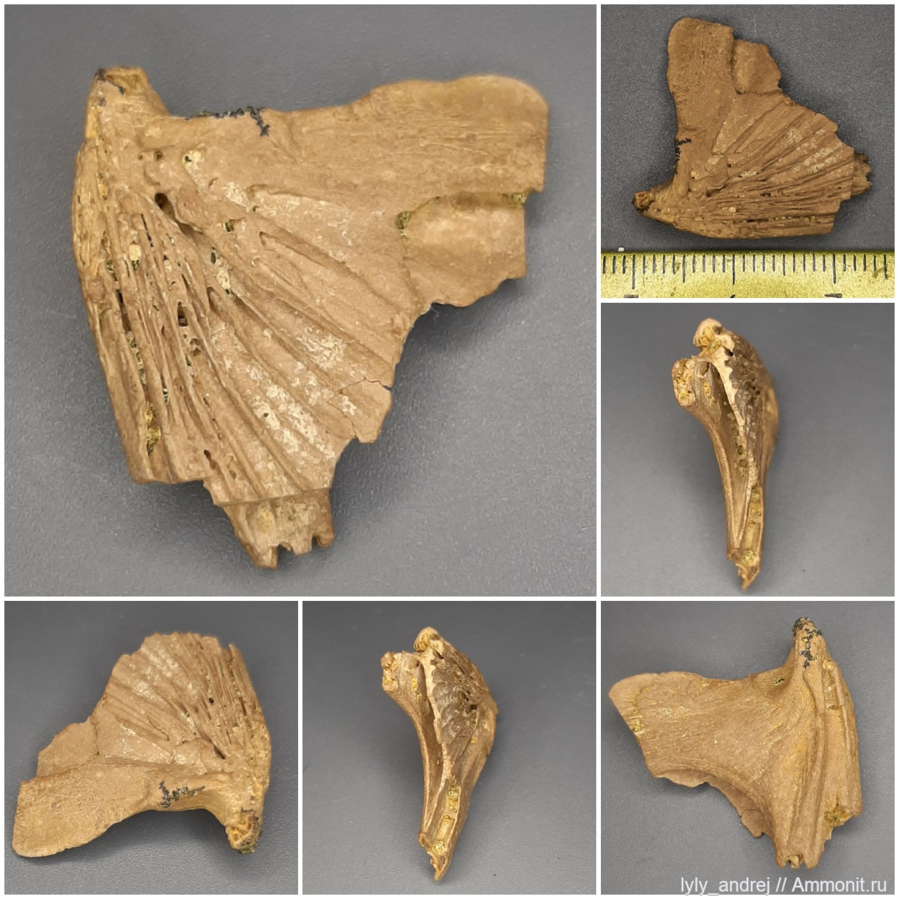 Вот попалась в сите вот такая интересная "запчасть" от меловой рыбки, по моему логическому мышлению и предположению - эта "запчасть где-то с головы рыбки (жаберная крышка, или с черепа). Может кто скажет точнее?