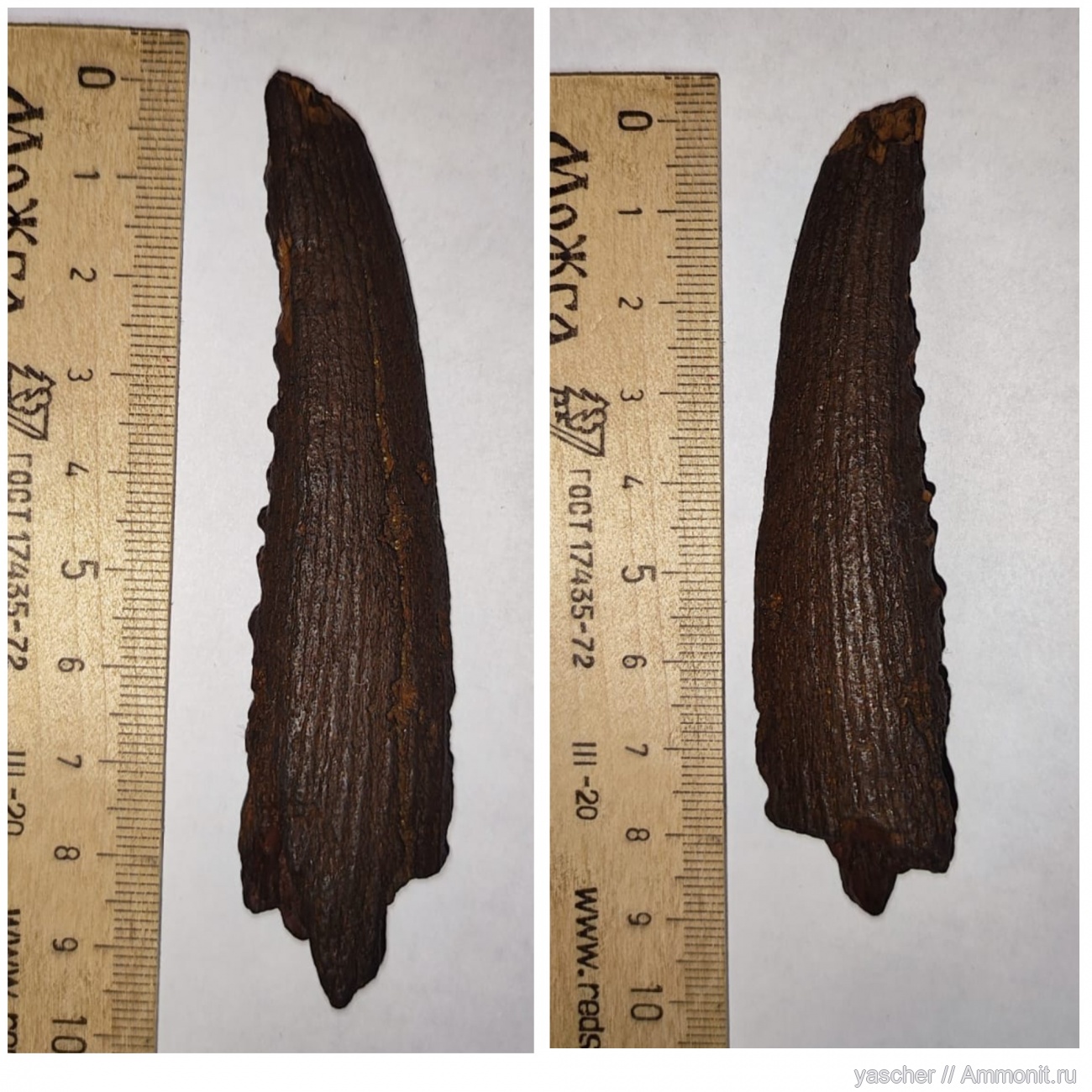 Судя по форме и рельефу, плавниковый шип гибодонтной акулы. Вот здесь похожий, но у моего зубчики не сохранились Ихтиодорулит-гигант . | ||||||
