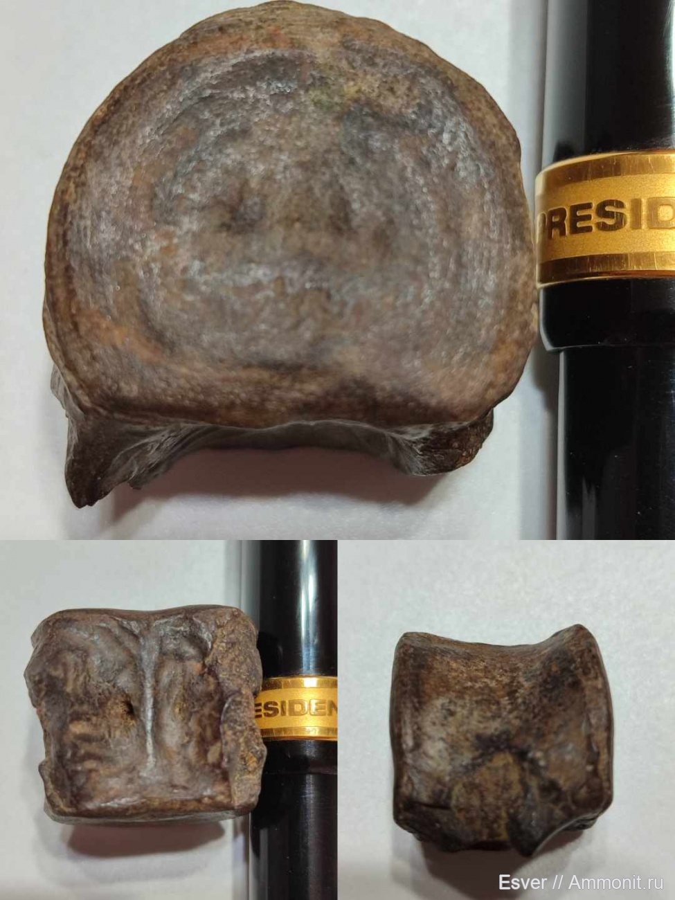 Найден в ручье, где ранее находил части скелета кита Цетотерия, поэтому и решил, что этот позвонок тоже принадлежит киту, хотя твердой уверенности нет. | ||||||