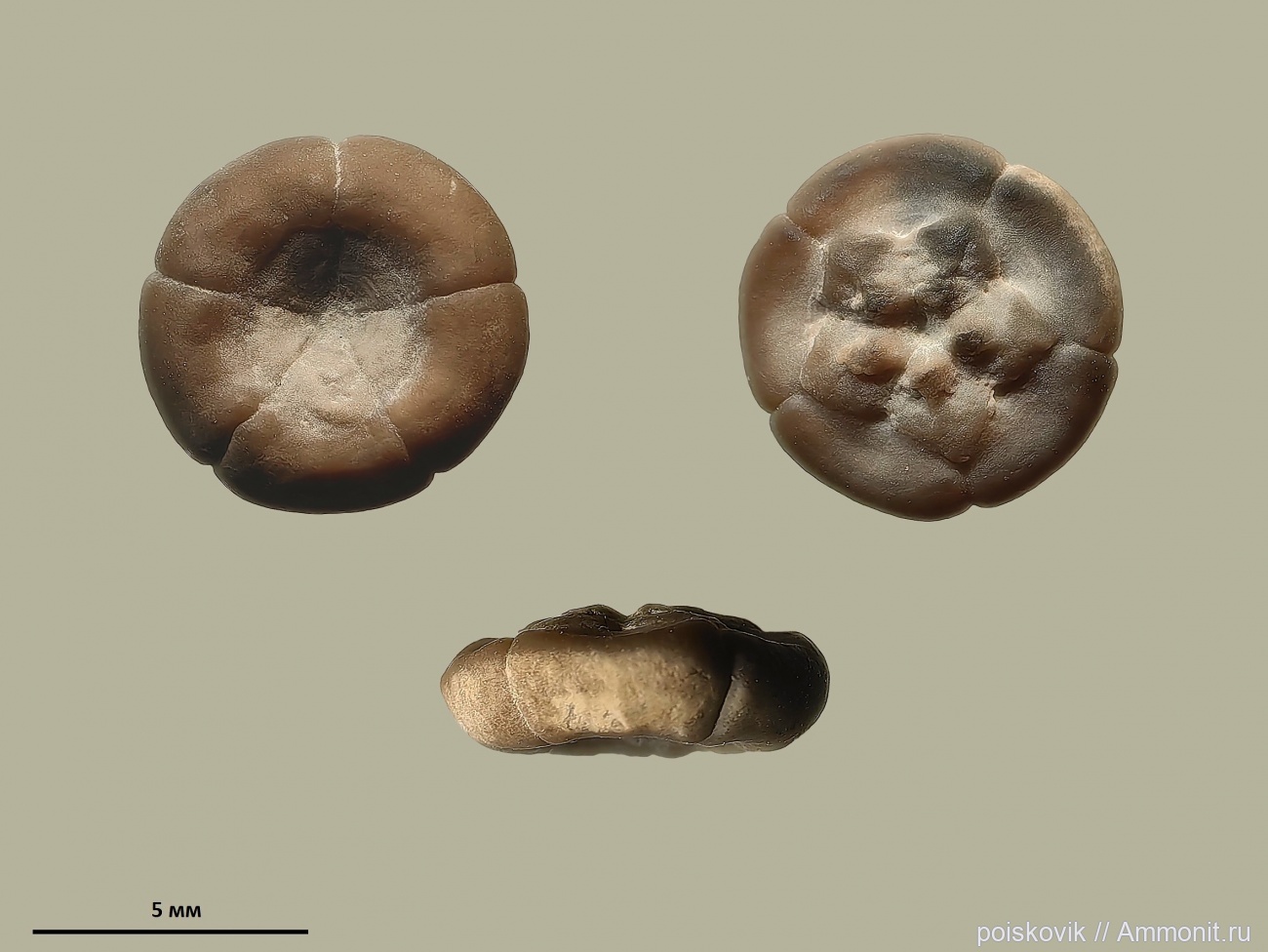 Какое чудо! То ли пряник, то ли какой-то странный цветок. Убрать размерный отрезок - нормальному человеку в голову не придет что это окаменелость :) | ||||||