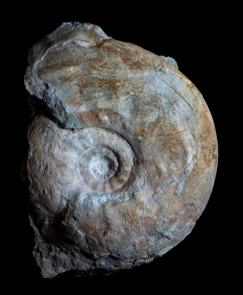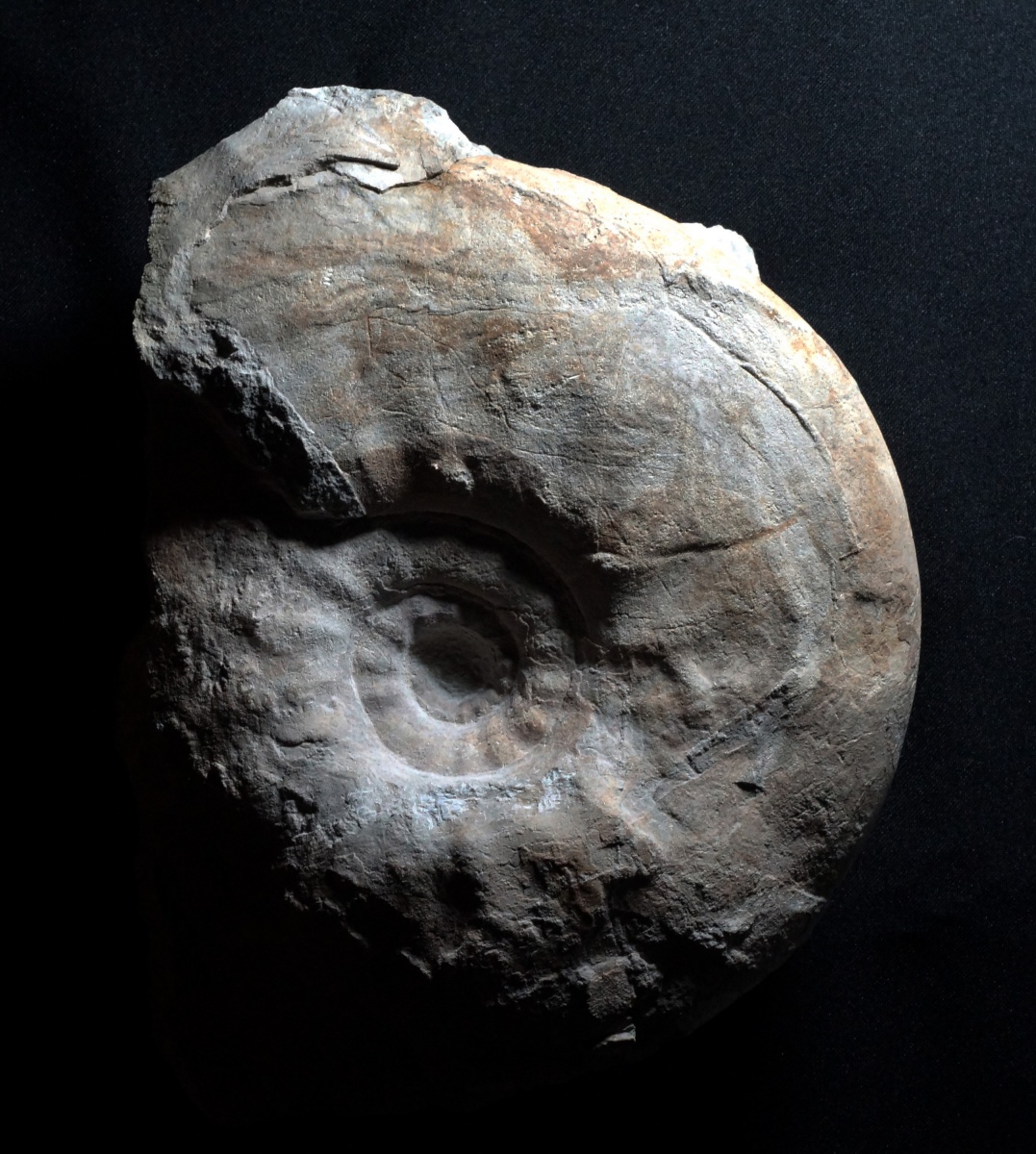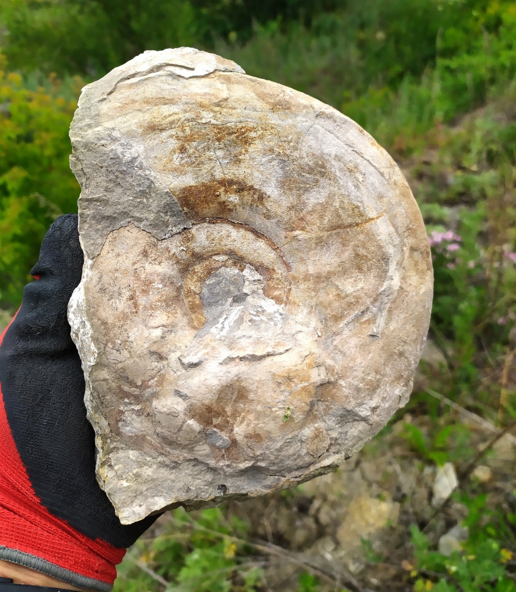 Аммонит открыт случайно. Лежал большой камень, на котором спереди был небольшой аммонит Craspedites.