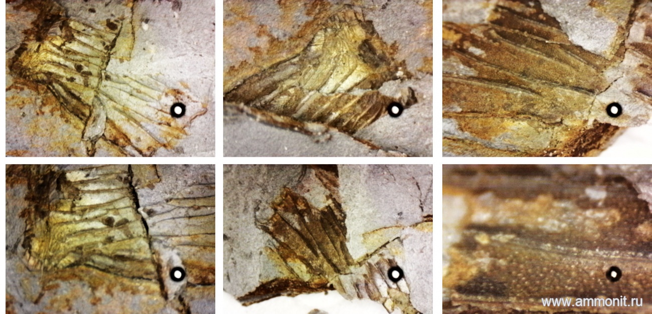На фото два крайних слева, вверху и внизу - противоотпечаток. А сам образец - остальные фото, внизу справа с увеличением. Прошу простить за помеху в виде точки - микроскоп решил накрыться медным тазом:)))