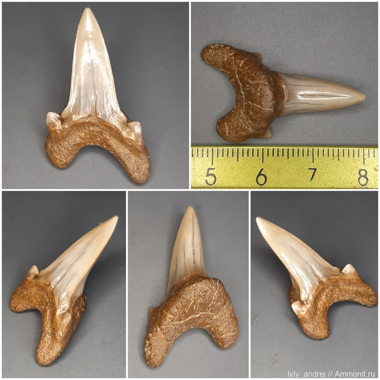 Всё при нём: и главный "клинок", и латеральные зубцы, и конечно же "подбородок" на корне.