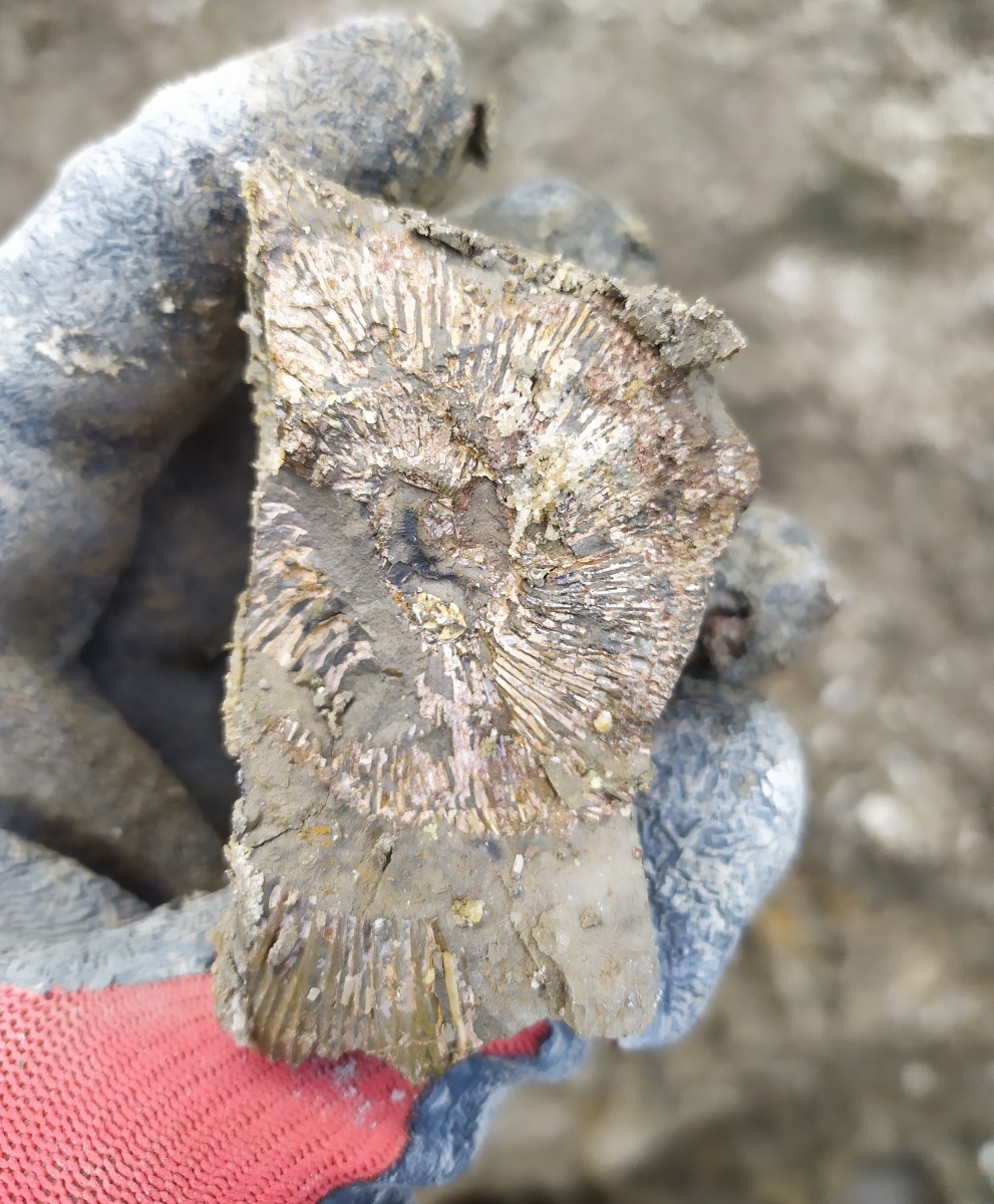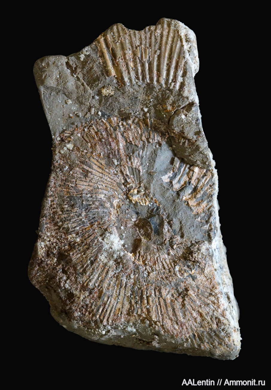 Фрагмент аммонита открыт при расслаивании тёмно-серой глины из отложений нижневолжского подъяруса.